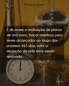 É de praxe a realização de planos de ano novo, pensar ou traçar no papel objetivos para serem alcançados ao longo dos próximos 365 dias e nutrir a sensação de que a vida está sendo renovada após essa passagem de tempo.