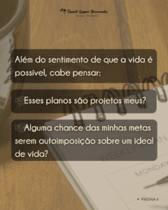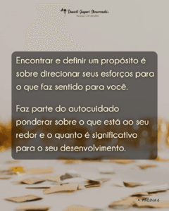 Encontrar e definir um propósito para suas escolhas e posicionamentos de vida é sobre direcionar seus esforços para o que faz sentido para você, faz parte do autocuidado ponderar sobre o que está ao seu redor e o quanto é significativo para o seu desenvolvimento.